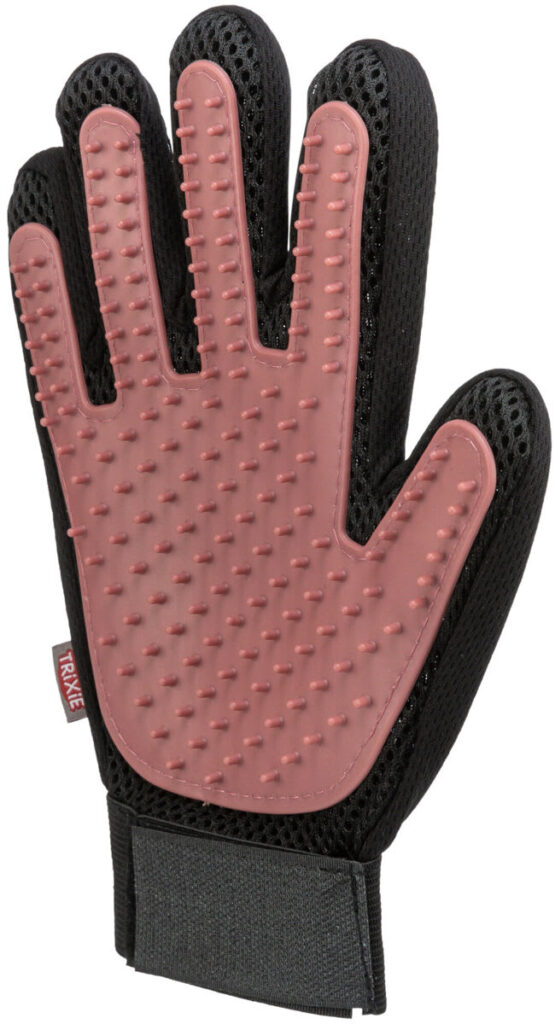 Børstehansken er veldig praktisk i bruk. Man tar hansken på som en vanlig hanske og stryker over hunden. Spesielt effektiv i røyteperioder.