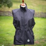 Treningsvest i lett, tynt stoff. Foret med mesh. Stramming i livet og nederst. Stor gjennomgående lomme bak, store utenpåsydde lommer foran. Glidelåslomme på brystet. D-kroker.