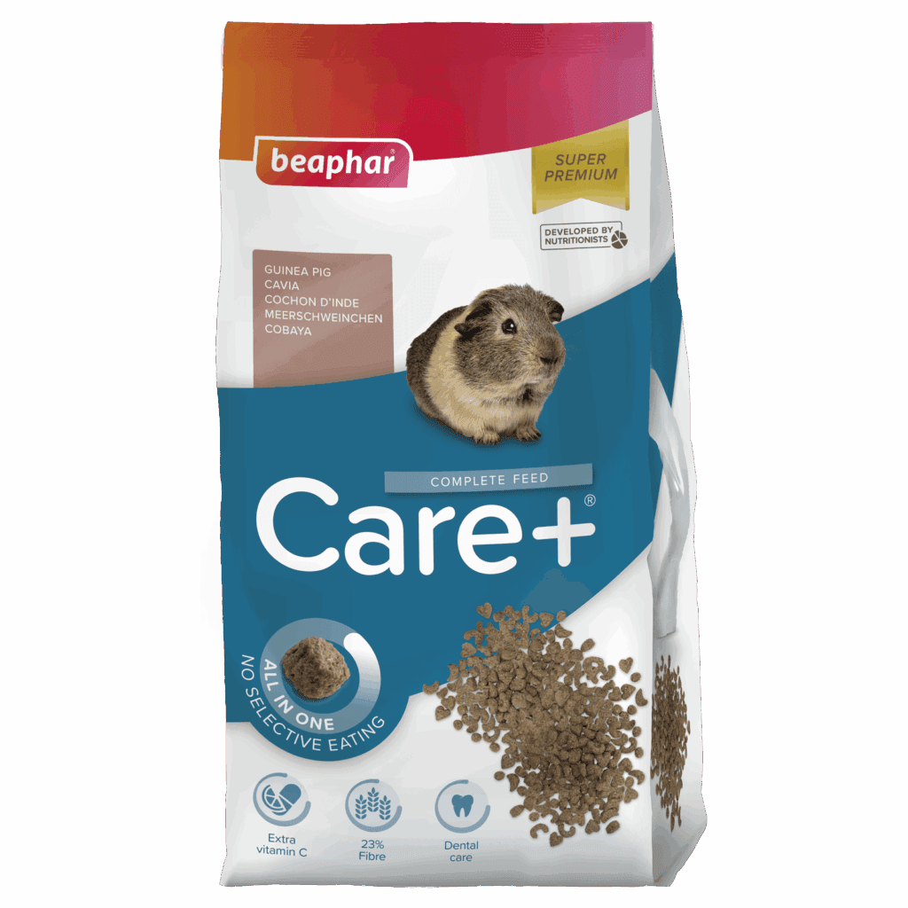 Care+ marsvin er et komplett marsvinfôr for voksne marsvin. Ved å fôre med pellets hindrer du selektiv fôring og marsvinet vil få i seg det den trenger siden hver bit har samme ernæringsmessige sammensetning.