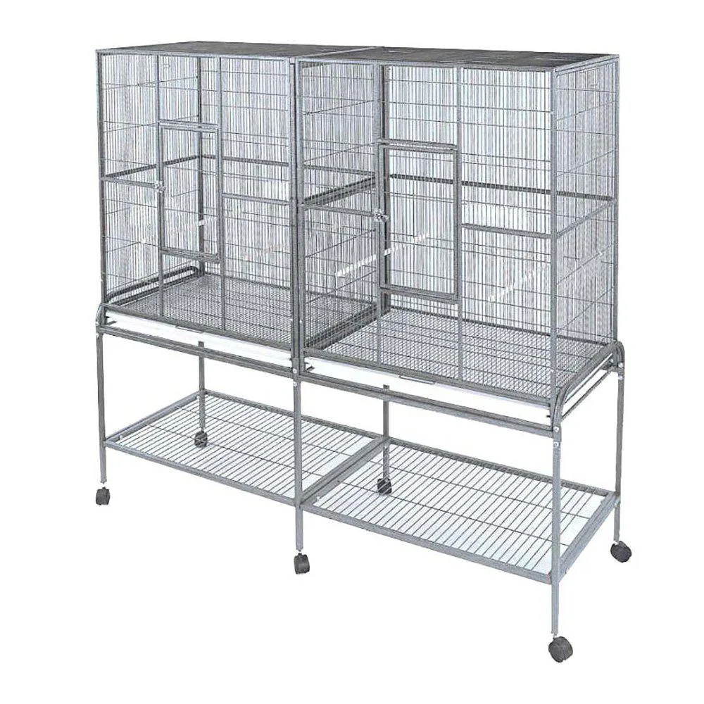 GD Rival Dobbel fuglebur m/bord Lysgrå melert 165x54x158cm