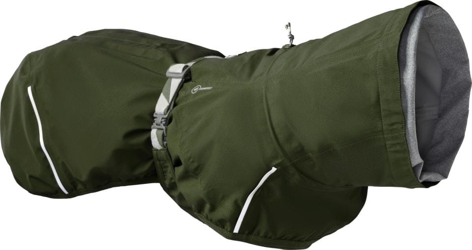Mudventure Coat ECO hundejakken er flott fordi den hjelper til med å holde litt av skitten borte fra hundens pels. Og fordi den ikke er foret, er den lett og behagelig for hunden å ha på seg. Regnfrakken er også praktisk i sommerregn dersom hundens pels trenger beskyttelse mot vind, vått vær, men ikke ekstra oppvarming.