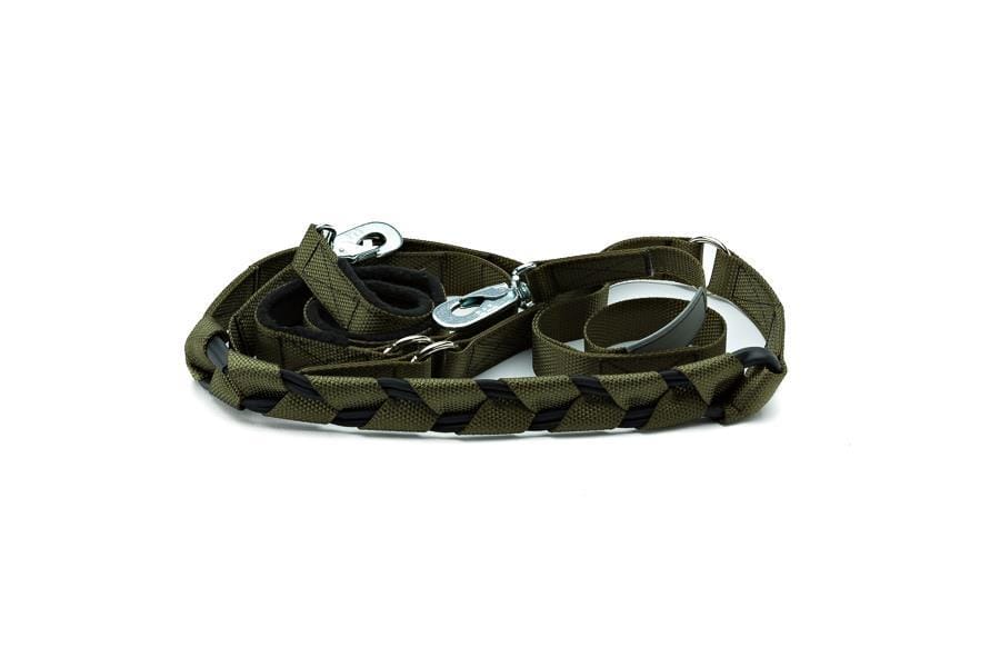 MR-kobbelet kan reguleres i 3 lengder, benyttes på 2 hunder, festes i magebelte, settes rundt livet, lage sitt eget belte mm. Hvis strikken ryker er fortsatt kobbelet helt, strikken kan enkelt byttes.