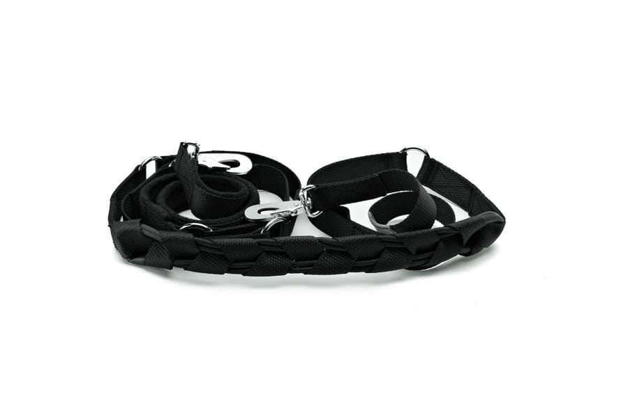 MR-kobbelet kan reguleres i 3 lengder, benyttes på 2 hunder, festes i magebelte, settes rundt livet, lage sitt eget belte mm. Hvis strikken ryker er fortsatt kobbelet helt, strikken kan enkelt byttes.