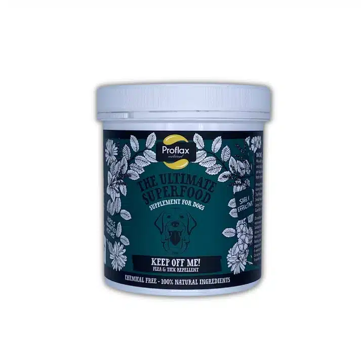 Proflax Keep Off Me!-tilskudd er et 100% naturlig loppe- og flåttavvisende middel for hunder, uten skadelige tilsetningsstoffer eller fyllstoffer.