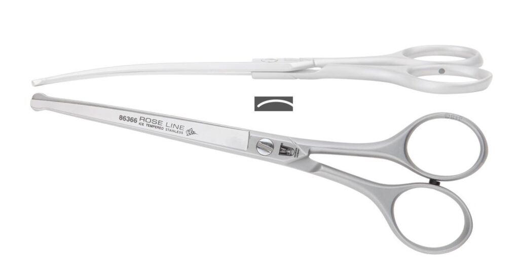 Spesialsaks for snute og poter av meget god kvalitet. En smart, smal og buet klippesaks med avrundet tupp, lengde 6.5″ = 16.51cm. Rose Line saksen fra Witte Solingen er laget av rustfritt edelt stål, polert, og perfekt slipte blader for optimalt resultat.