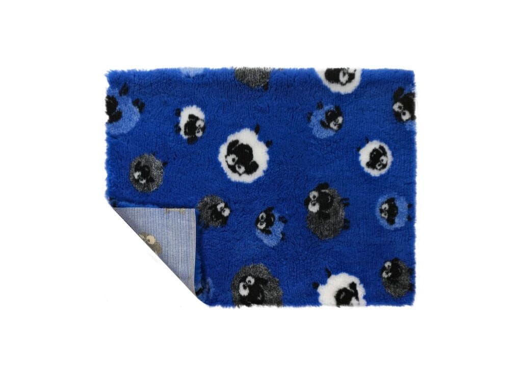 VetBed Nonslip Blå m/hvite/grå/lyseblå sau 150x100cm